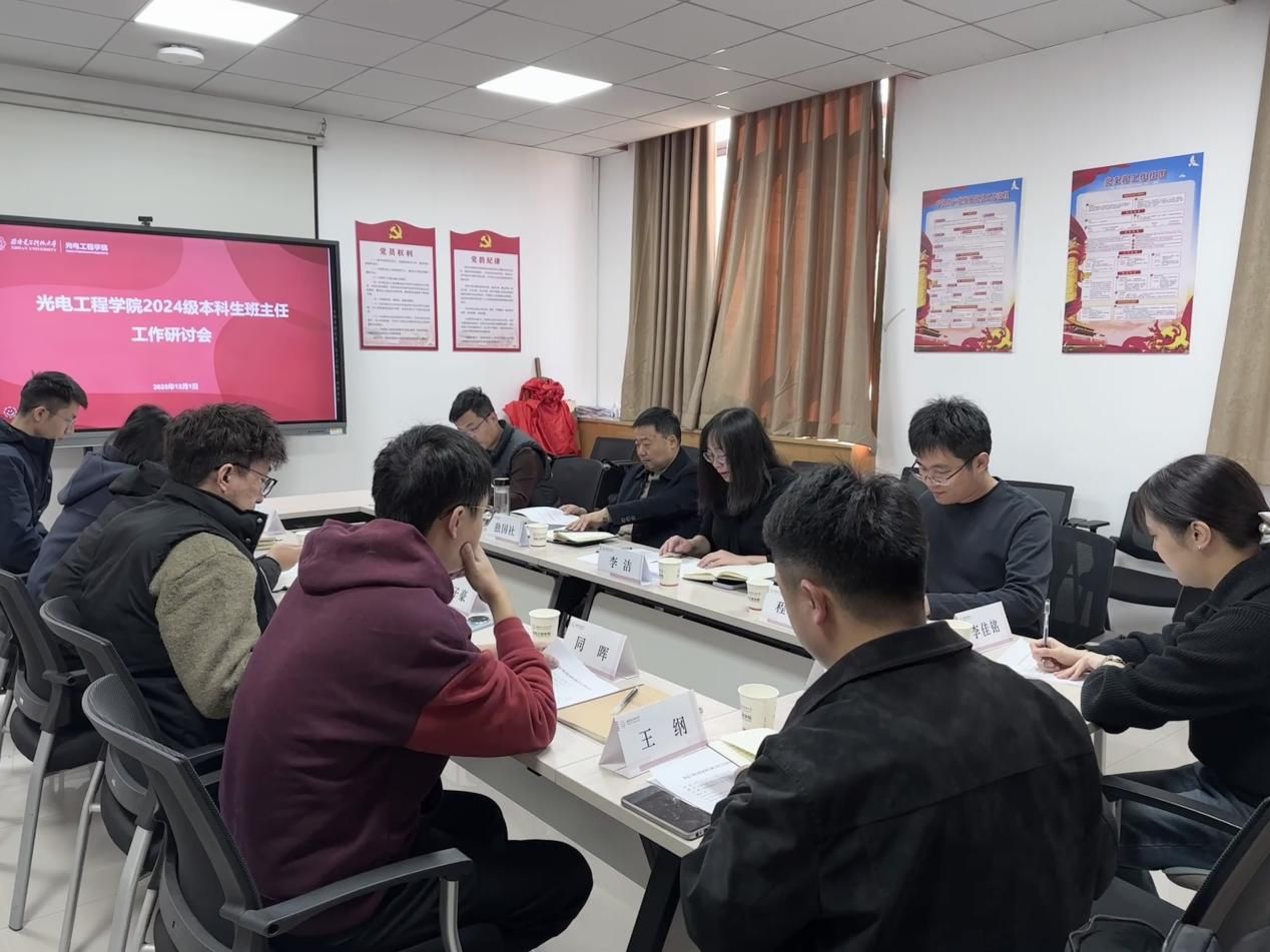 本科生班主任制度实施办法》进行了详细解读,系统梳理了班主任的岗位职责、工作要求和考核机制。2023级班主任代表程华超老师从生涯规划指导、科研学术启蒙等方面分享了自己过去一年的工作经验与心得体会。2024级班主任同晖、王子豪、梁益泽、董雪、卫临方五位老师结合半年来的工作实际依次介绍了工作开展情况。交流环节中,与会人员围绕学风建设、科创竞赛、“班主任+辅导员”协同育人机制等话题展开深入讨论,大家共同剖析了工作难点与现实困惑,并就激发学生学习主动性、建立定期沟通机制、联合开展特色活动等内容提出了建设性意见。