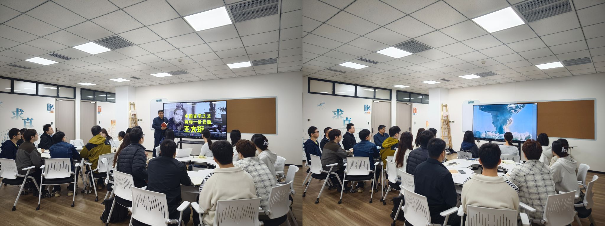 仪器馆、奠定新中国光学事业基础,再到为“两弹一星”工程研制大型光学观测设备呕心沥血的事迹,深深触动了在场的每一位光电学子。