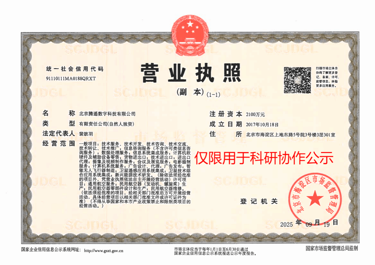 科研协作项目管理办法(试行)》文件规定,为加强学校科研协作项目的管理,确保红外辐射建模项目的顺利进行。北京腾遥数字科技有限公司与项目负责人张建奇将开展科研合作,现将合作相关事项公示如下: