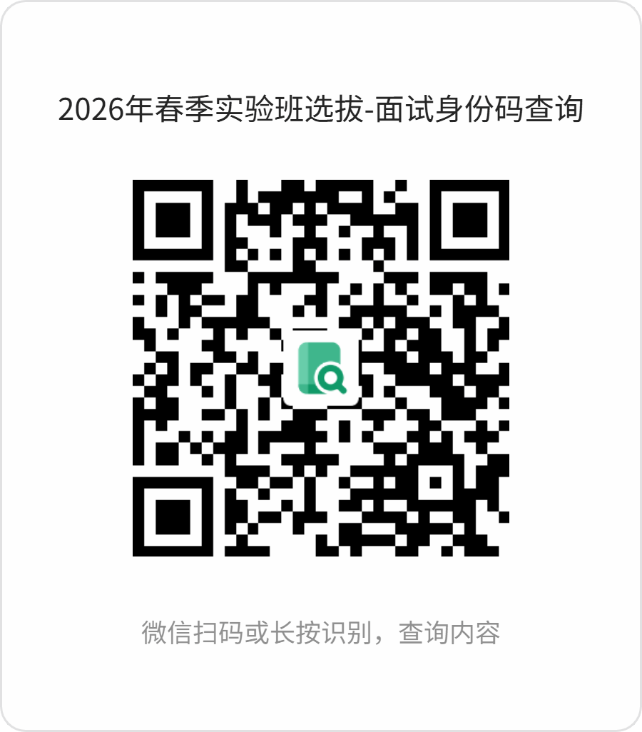 2.面试身份码查询二维码将于面试前1天正式生效,可通过微信扫描如下二维码或登录网站,输入姓名和学号查询: